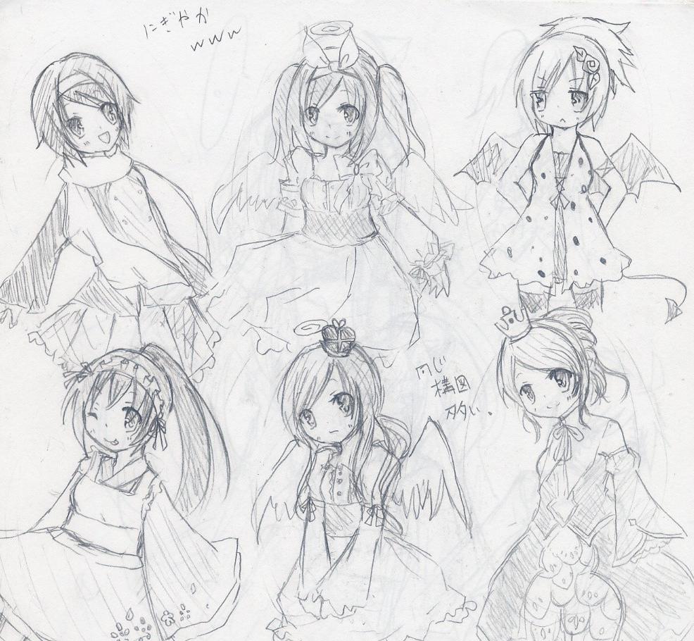 あとはまぁ、ちょっと学校で自由帳に描いた自キャラ達とか\(^o^)/